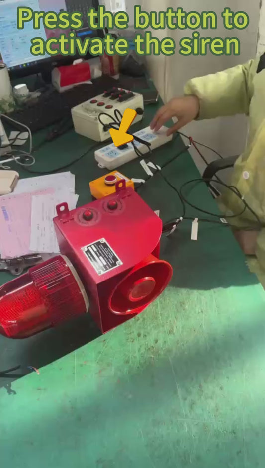 YASONG Industrial Siren Alarm 130dB IP65 Waterproof Outdoor Loud Horn Indoor 150W Emergency Security Self-Contained Siren with Strobe Light SLA-900M