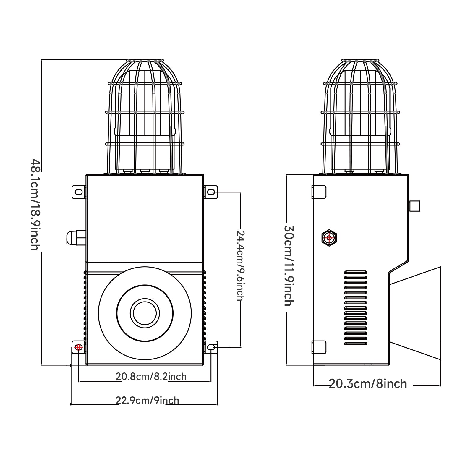 【Durable Material】 The tornado siren features a cold-rolled steel casing, combined with a collision-resistant mesh design on the lampshade, offering excellent durability and wear resistance. Its strong impact resistance helps reduce the risk of equipment damage