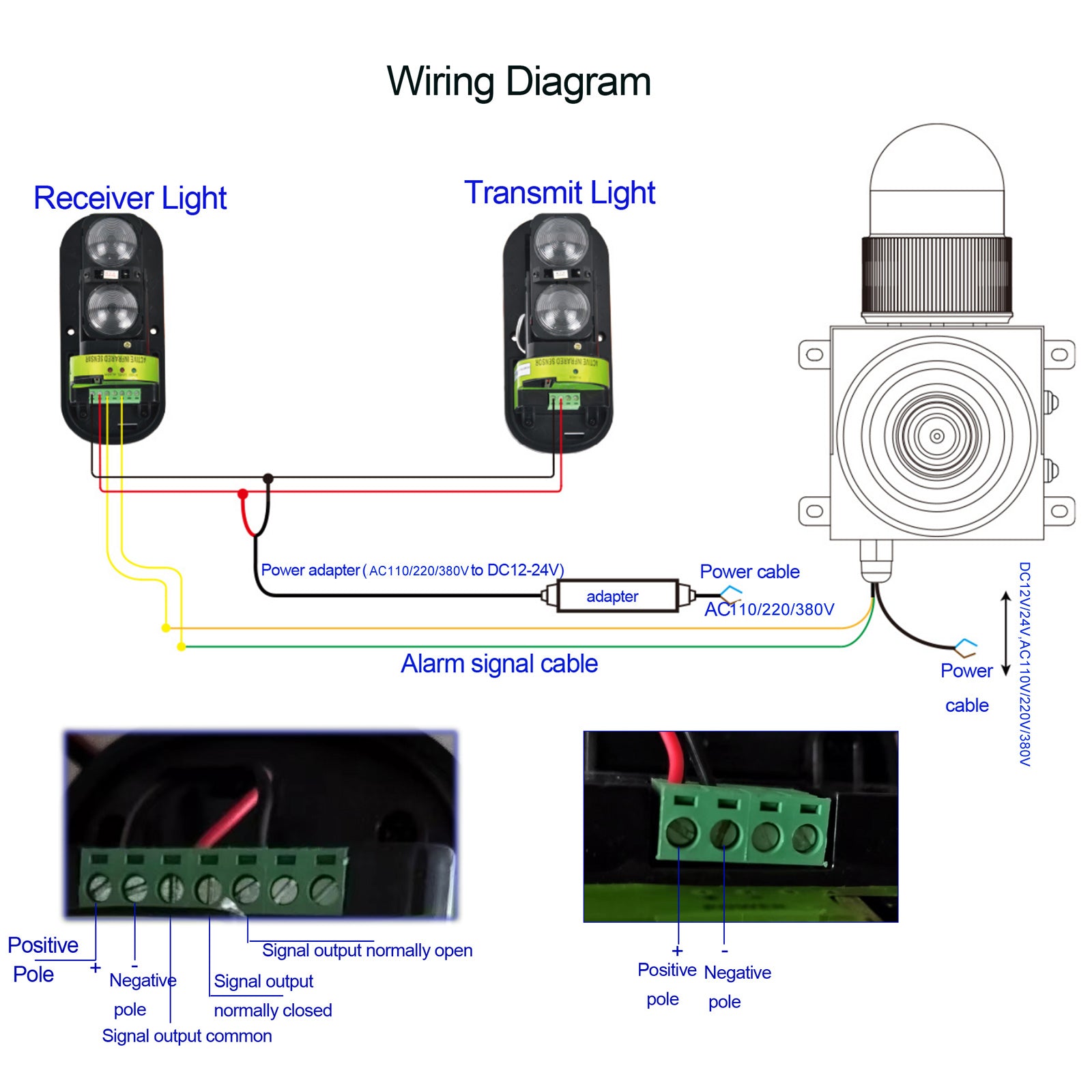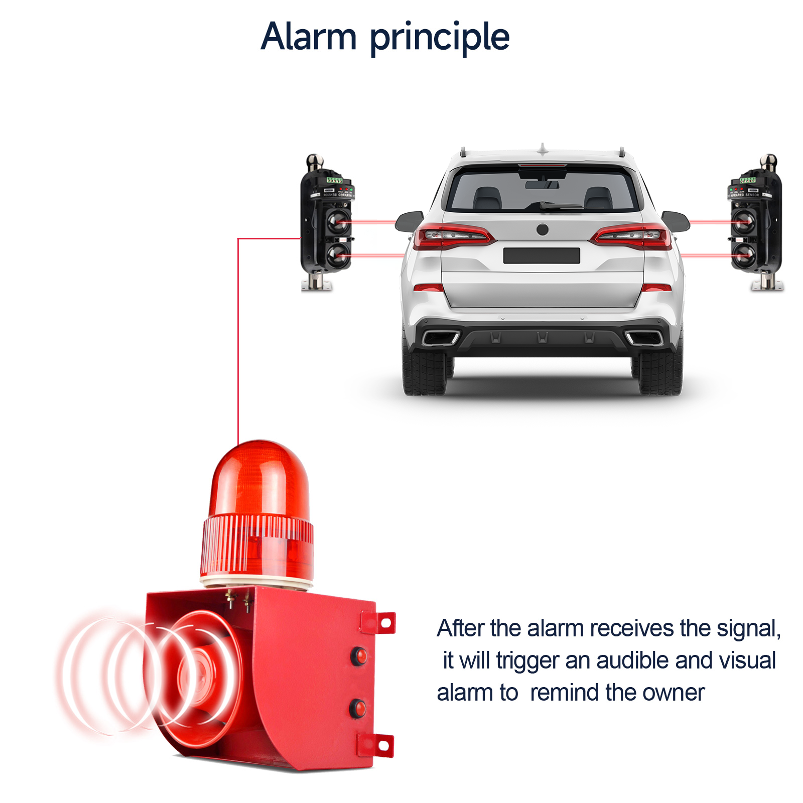 Industrial Siren Alarm with 100m Invisible Beam Infrared Sensor Detector 120dB Adjustable Tone Volume Outdoor Security Alarm for Factory Warehouse Garage
