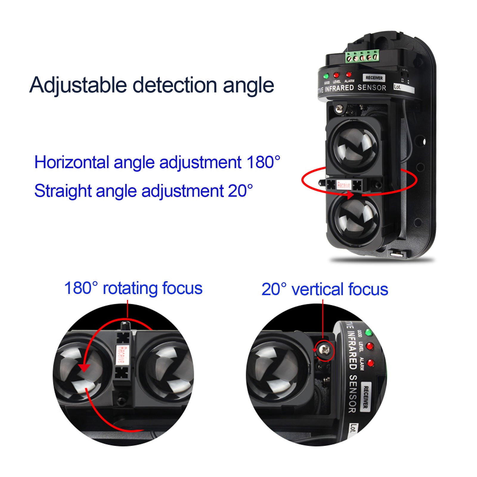 Infrared detector features: its alarm distance in the outdoor environment up to 100 meters; Dual-beam, pulsed infrared quick speed respond; with premium shell, it is waterproof for practical use; Optical lens up and down while structural adjustments, to adjust faster and more accurately; LED indicator for fast and accurate fine beam alignment.