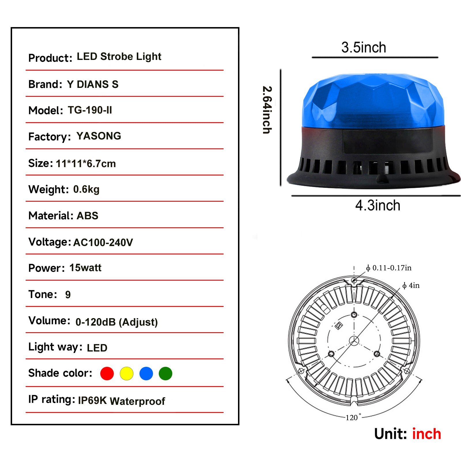 YASONG Strobe Lights IP69K Waterproof LED Beacon Signal Light with 120dB Horn 2 Flashing Modes for Vehicles, Truck, Forklift, Workshop DC10V-30V