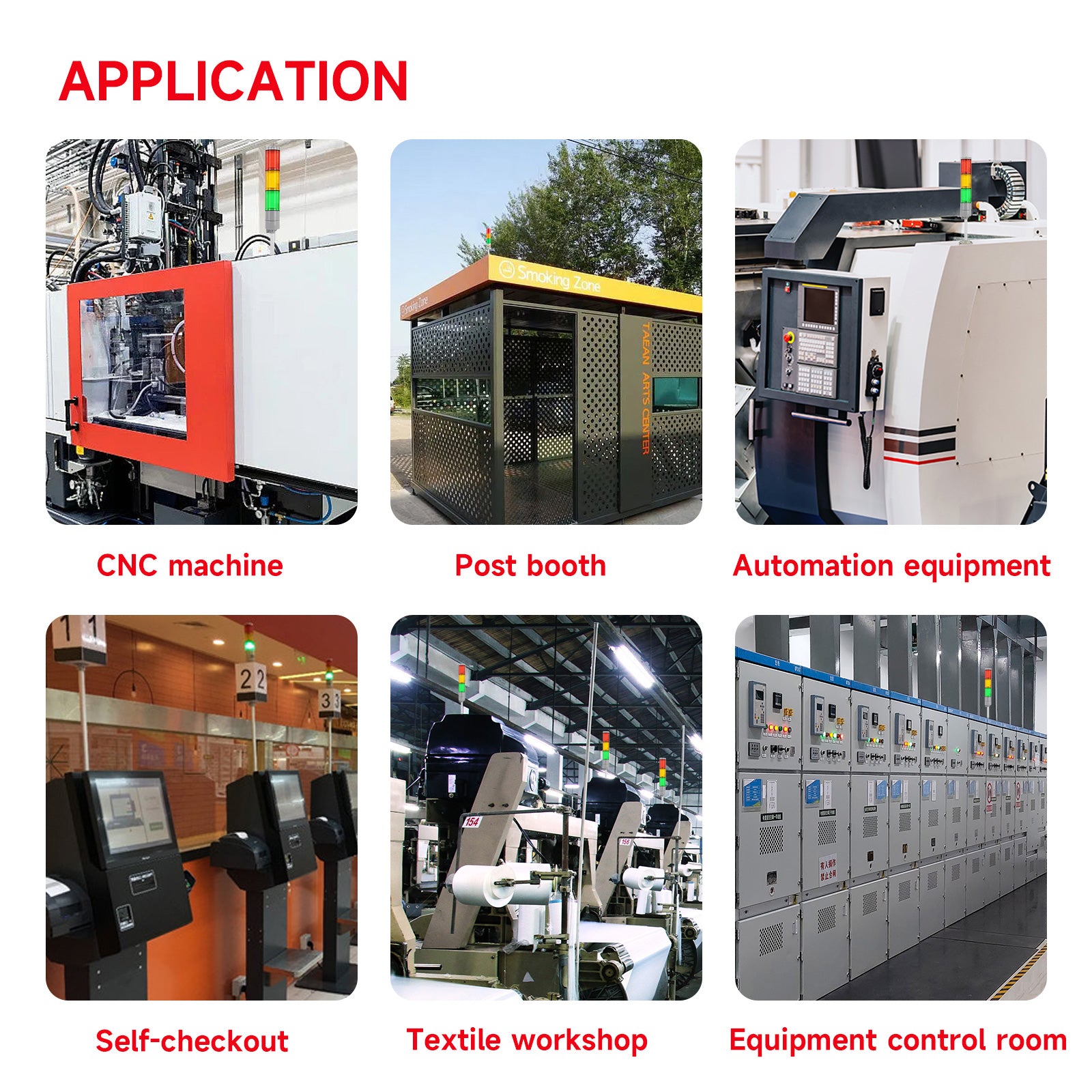 Applications:These are Andon lights for use in factories or on industrial machinery. Typical uses are as automated machinery status lights, operator signal lights, safety warning lights. Suitable for cnc machine and other instruments that require multiple signals. Such as CNC, machining centers, textile machinery, automated production lines, laser equipment, automated warehouses.